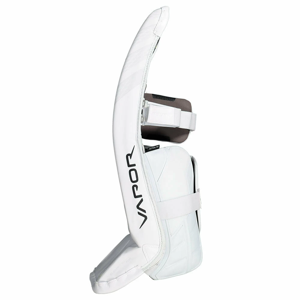 Built with a brand new knee bracket, the Bauer Vapor Hyperlite Goalie Pads offer a new technology called Stabiliflex, which is 30% lighter and provides 25% more flexibility compared to Stabilislide from Supreme. To provide goalies even better rebound speed and at the same time a more flexible & lighter pad, the Hyperlite Goalie Pads come equipped with Rebound Boost Core, a new foam never before used in goalie pads. The Vapor Hyperlite Goalie Pads also feature an added Balance Plate, a pillow at the calf to give you never-seen-before balance and ice seal.