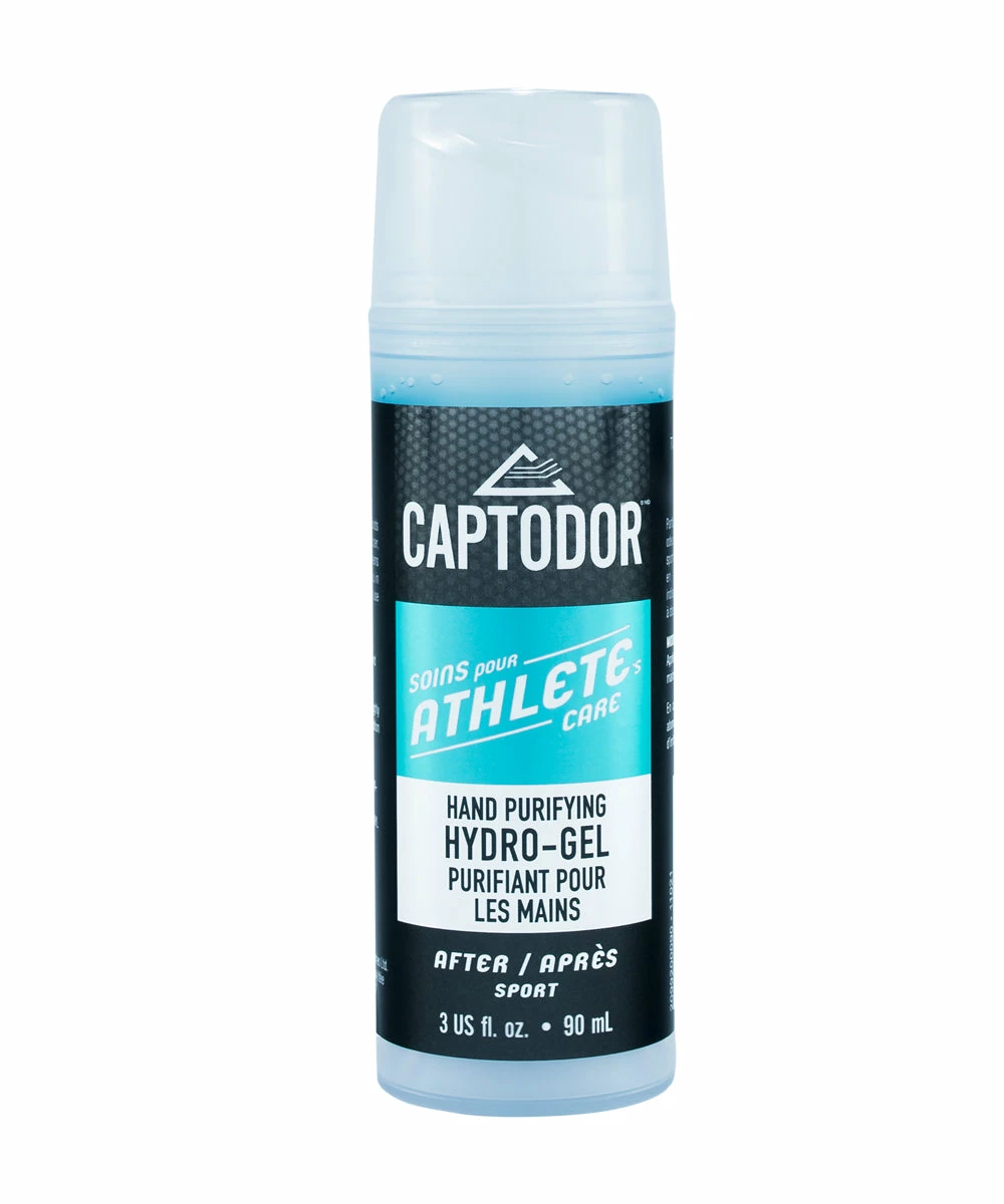 CAPTODOR® Hand Purifying Hydro-Gel is an after-sport product. The hand purifying gel should be applied liberally to hands after a game to help eliminate the smell from equipment that attaches to the skin.