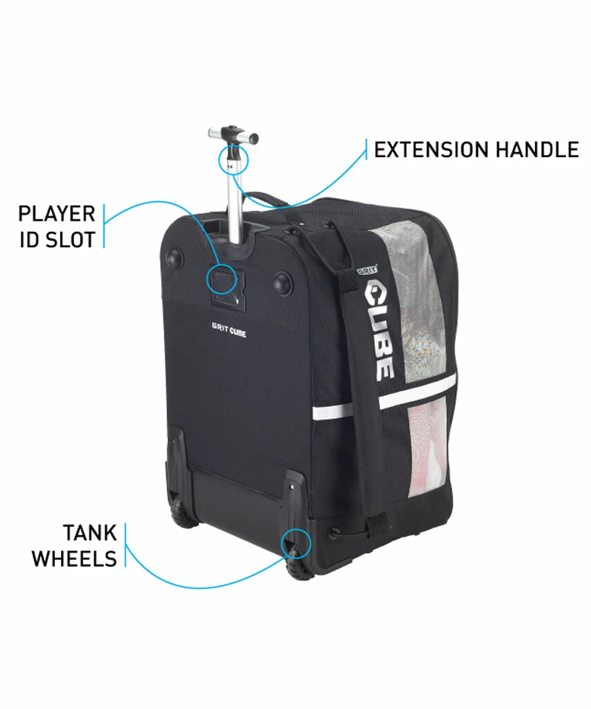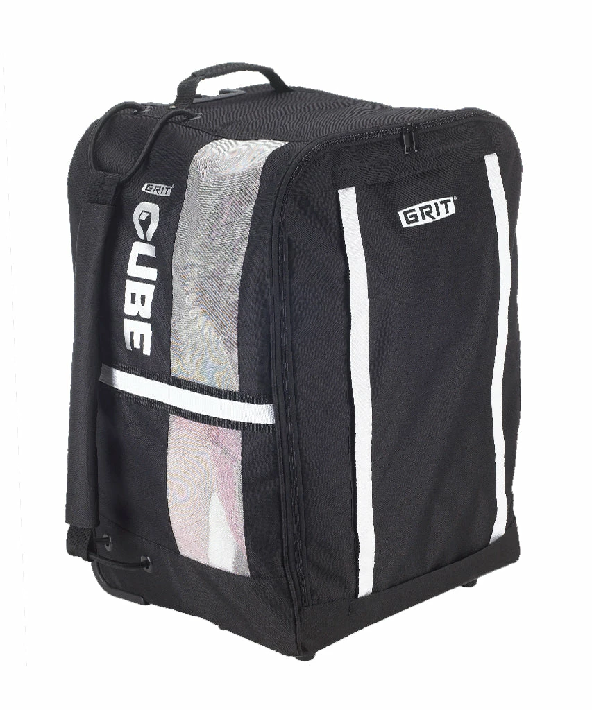 The perfect shape for a hockey bag is a CUBE, because it stacks & packs. The GRIT Cube Jr sports a pro shape that can be wheeled or carried. The bag is available in black 600 D polyester accentuated by silver mesh vents. The Grit Cube Accessory Pack features removable coloured panels and strap covers allowing you to customize your CUBE in ten (10) colour combinations – accessory packs are sold separately.
