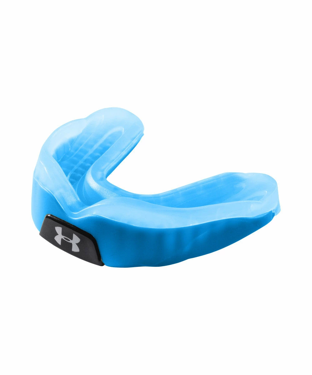 Under Armour ArmourShield™ FlavorBlast mouth guards are designed for all contact sports and the FlavorBlast embedded flavor beads deliver long lasting taste. ArmourShield™ technology uses patented Bite Flex™ and ArmourPlate™ to provide higher-impact protection to the teeth, jaws and gums. The ArmourPlate™ insert delivers improved protection while the Bite Flex™ absorbs energy on impact. The patented Polymer Shrink provides the ability to breathe and talk easily. This mouth guard features a convertible strap/strapless tether and is latex-free.