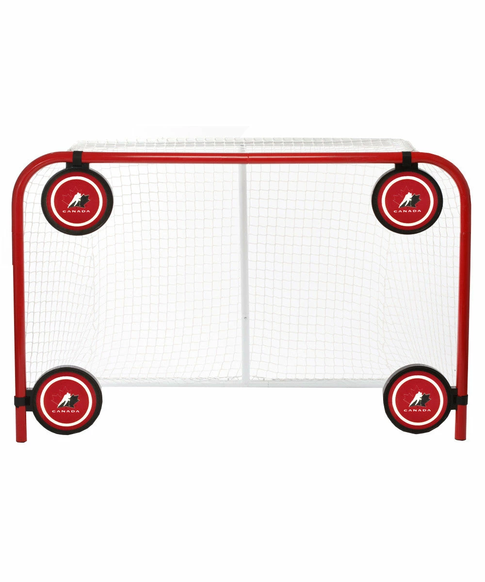Attach these Hockey Canada Foam Shooting Targets to the posts or crossbars to practice your shot. Sold in packs of 4, hockey net not included.